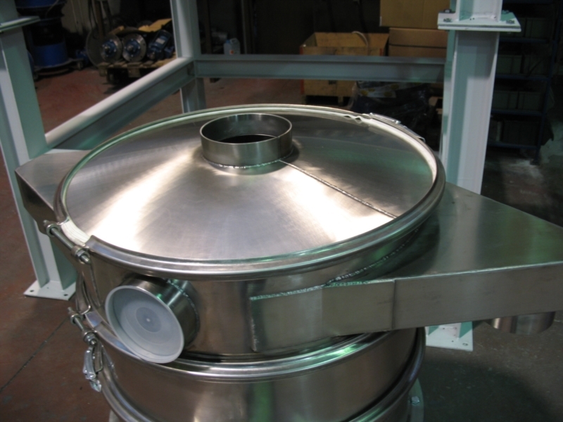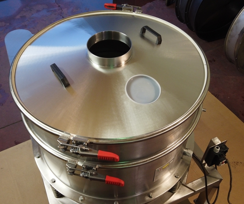 Our circular screens can be equipped with a closing cover, featuring a central feeding mouth, to prevent dust from dispersing into the environment.