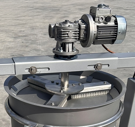 Es nutzt die Vibration, um die über dem Gitter auf einem speziellen Rahmen montierten Bürstengruppen zu bewegen. Die Bürsten drehen sich, wodurch die Verstopfungen entfernt werden.