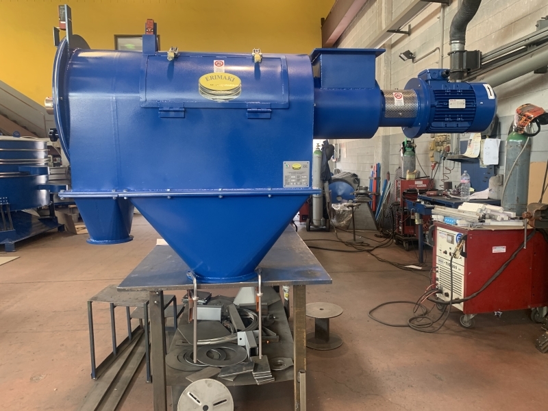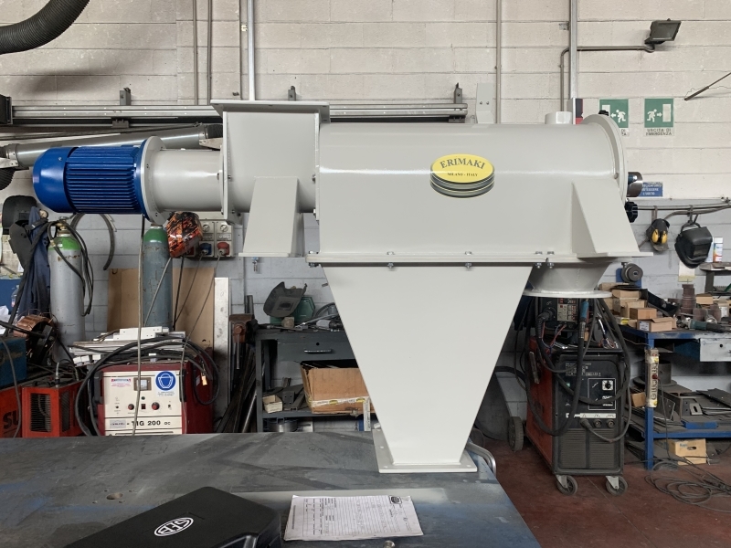 ERIMAKI manufactures the rotary separator in three models, featuring different dimensions and thus hourly rates, to meet the different customer requirements. The machines may be made of carbon steel or stainless steel. The latter, upon request, may be supplied with a mirror-polished surface finishing.